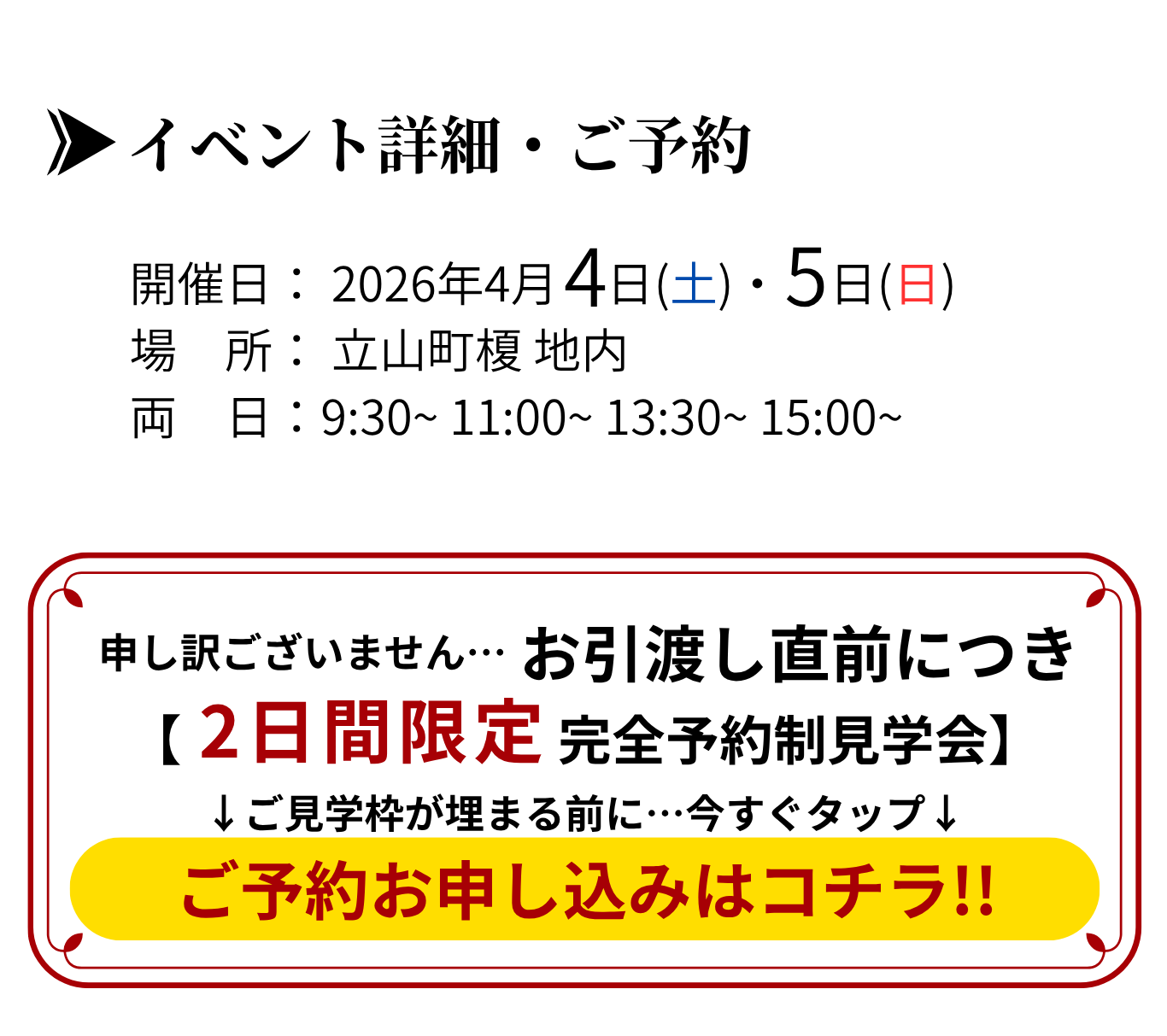 4/6(月)~4/12(日)このモデルハウスをご見学頂ける最後の一週間!!