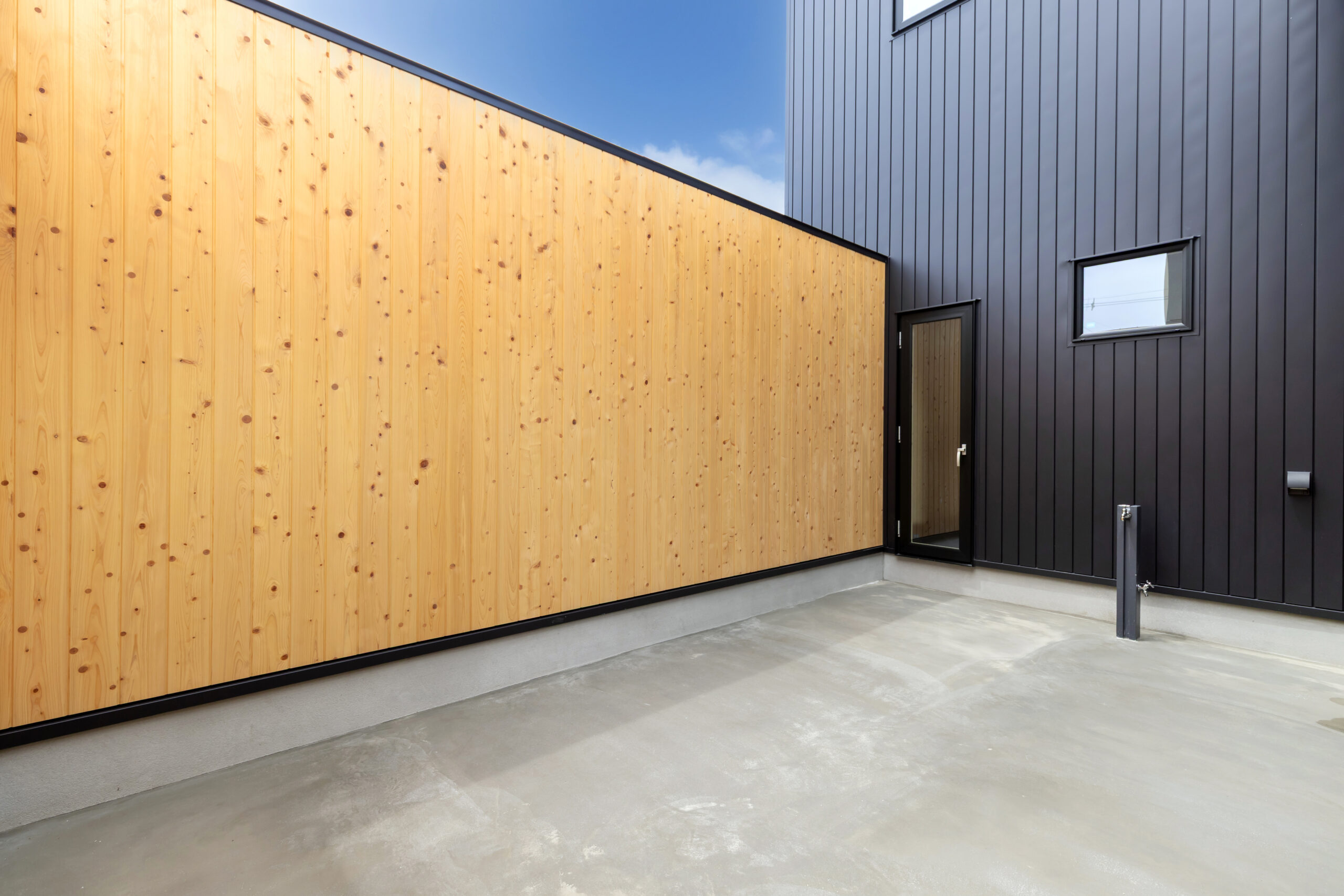 桧の板張りがかっこいいコートテラス。